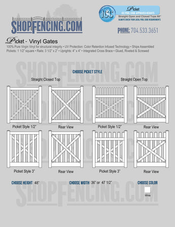 Picket Gap | Top Design | Color | Add Gate Hardware | Add Slope To Gate - OPTIONAL