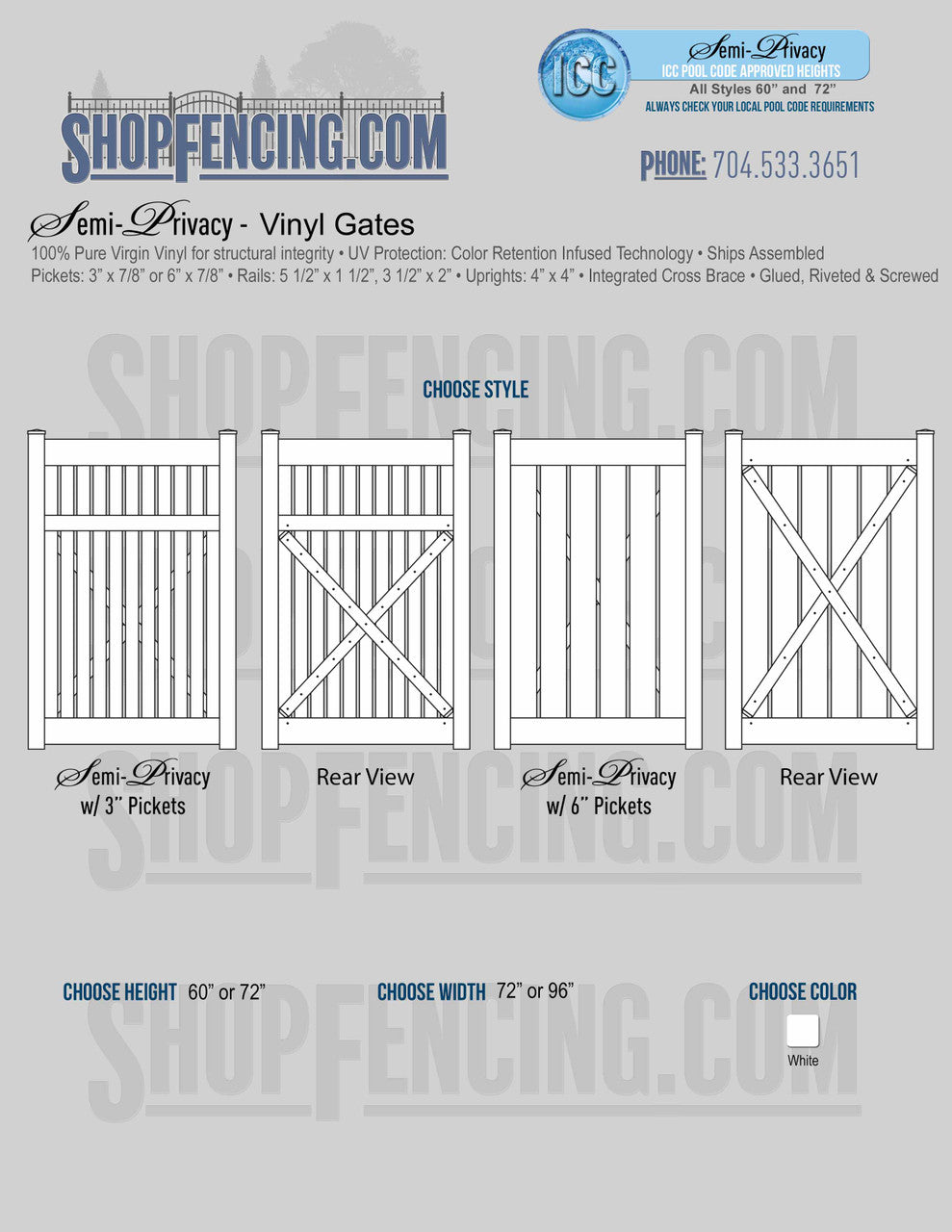 Semi-Privacy Vinyl Fencing ICC Pool Code Approved Heights: